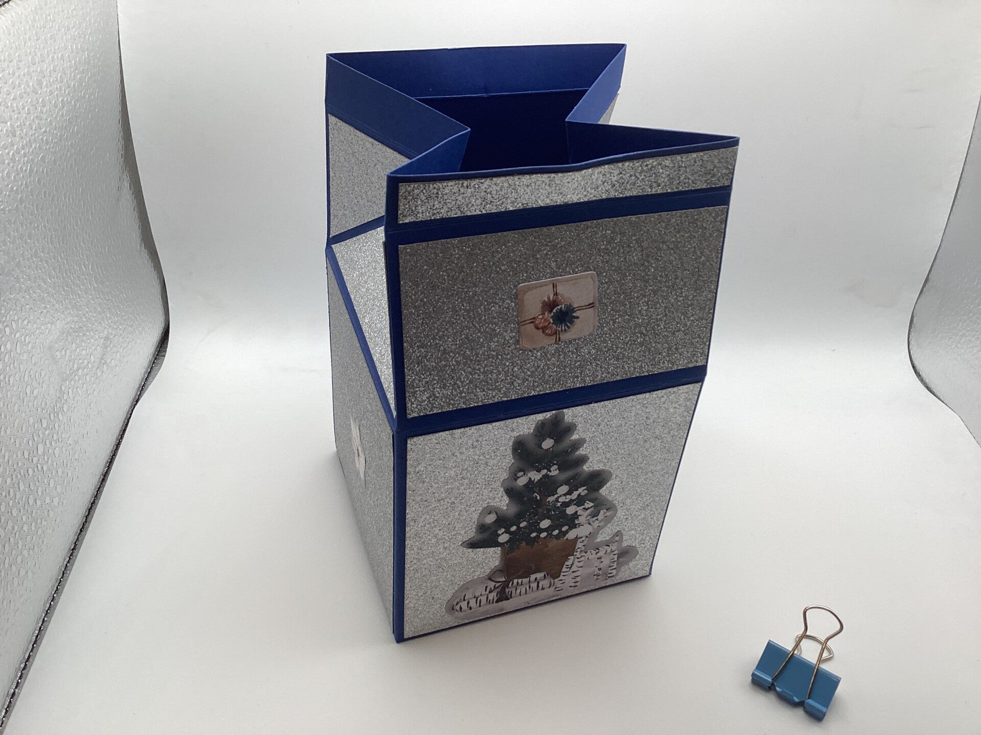 festliche Geschenkbox ca 10x 10 cm silber und blau