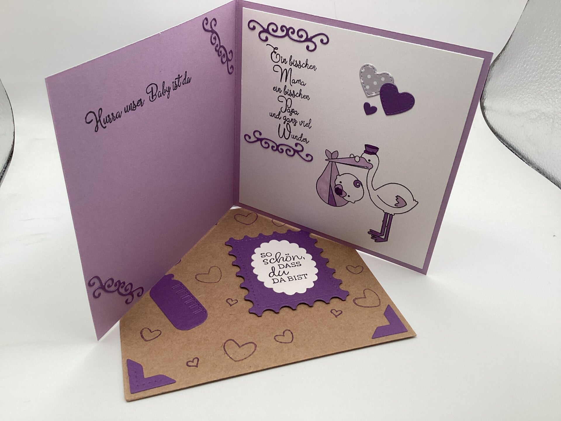 Süße Glückwunschkarte zur Geburt mit Innenteil und Umschlag