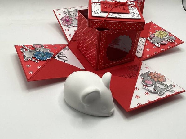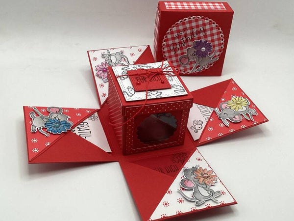 Süße Überraschungsbox zum Geburtstag im Innenteil sind Einsteckmöglichkeiten für Grüße oder Bares